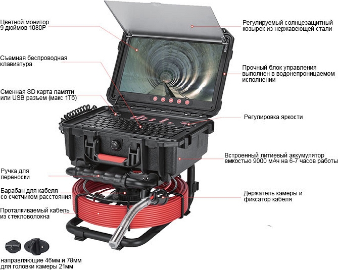 – Головка камеры Ø 21 × 45 мм, 1080Р (1920 × 1080), 12 × LED