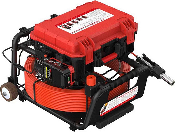 - Барабан для проталкиваемого кабеля Ø 5,3 мм × 40 м со счетчиком расстояния и системой торможения