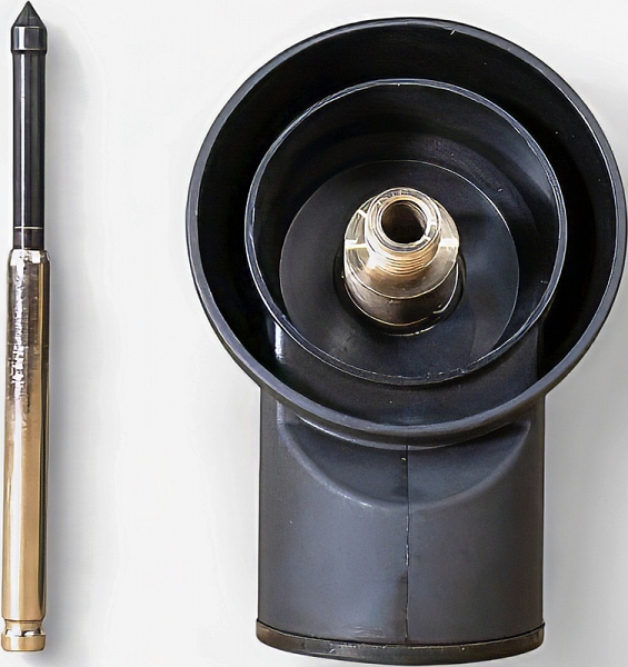 - Центратор обеспечивает точное и стабильное позиционирование пылеотвода для алмазного бурения относительно алмазной коронки, предотвращая смещение и снижая износ