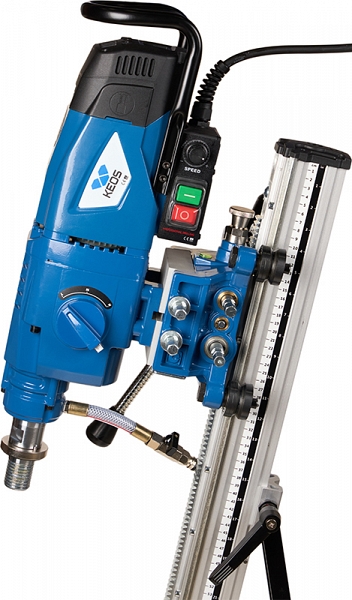 Установка алмазного бурения Keos KS-350 JSet (Кеос КС-350 ДжейСет) предназначена для сверления отверстий Ø 20 – 350 мм в бетоне, железобетоне, кирпиче и других твердых материалах, под прямым углом и под углом до 65°. Идеально подходит для прокладки телекоммуникационных и сантехнических сетей, сверления отверстий на строительных объектах.